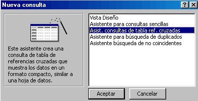 Elegir la opción Asist. consultas de tabla ref.cruzadas del cuadro de diálogo que aparecerá: