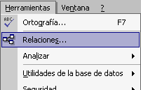 Para crear relaciones en Access2002 primero deberemos acceder a la ventana Relaciones, podemos optar por: