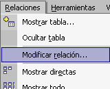 Para modificar relaciones ya creadas: Posicionarse en la ventana Relaciones y elegir entre estas dos formas: