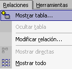 Si ya hemos creado una relación y queremos crear otra pero no se dispone de la tabla en la ventana Relaciones debemos añadir la tabla a la ventana: Primero nos situamos en
