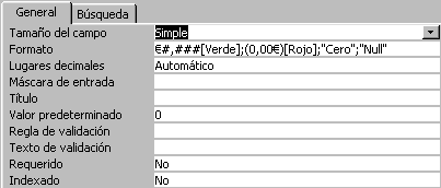 Se utiliza esta propiedad para establecer un índice de un solo campo. Los índices hacen que las consultas basadas en los campos indexados sean más rápidas, y también aceleran las operaciones de ordenación y agrupación. Por ejemplo, si buscas empleados basándose en un campo llamado Apellidos, puedes crear un índice sobre este campo para hacer más rápida la búsqueda. Esta propiedad dispone de tres valores: No: Sin índice. Sí (con duplicados): Cuando se asigna un índice al campo y además admite valores duplicados (dos filas con el mismo valor en el campo). Sí (sin duplicados): Cuando se asigna un índice pero sin admitir valores duplicados.