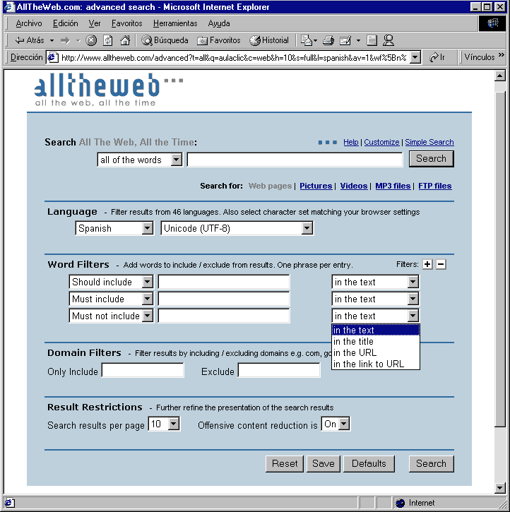 resultados, con los Word Filters podemos seleccionar sólo algunos de esos