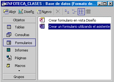 Explicaremos a continuación la forma de crear un formulario utilizando el asistente.